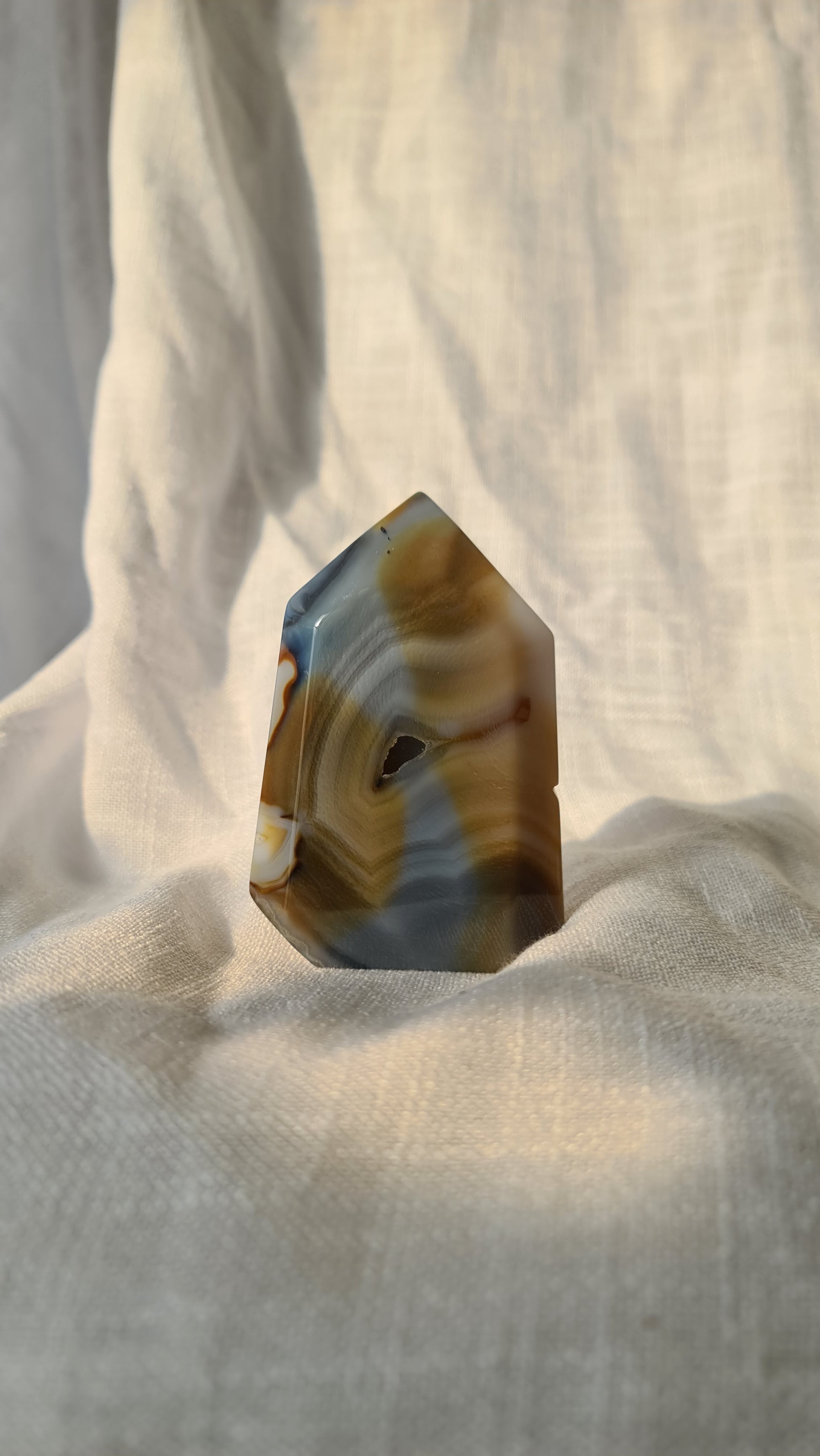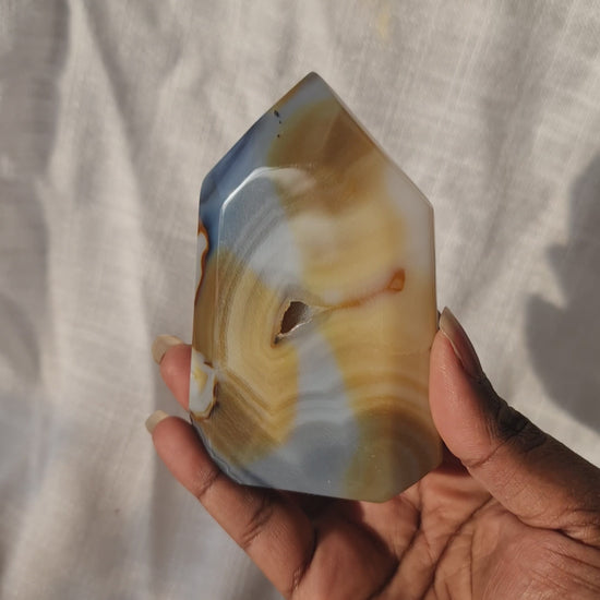 Agate is a banded variety of chalcedony, and trace elements and minerals become trapped, giving rise to the incredible range of colors such as yellows and blue.