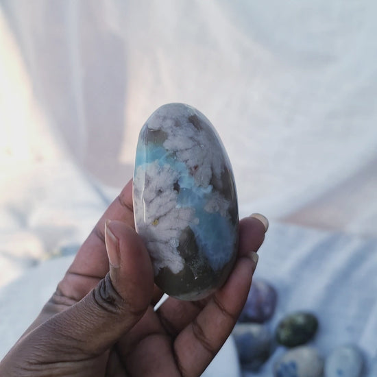 Flower Agate, with its delicate floral patterns and gentle energy, indeed has a strong association with enhancing feminine qualities and connecting to the divine. When combined with Hematite and Basalt inclusions, it gains additional properties that bolster its grounding and protective effects.