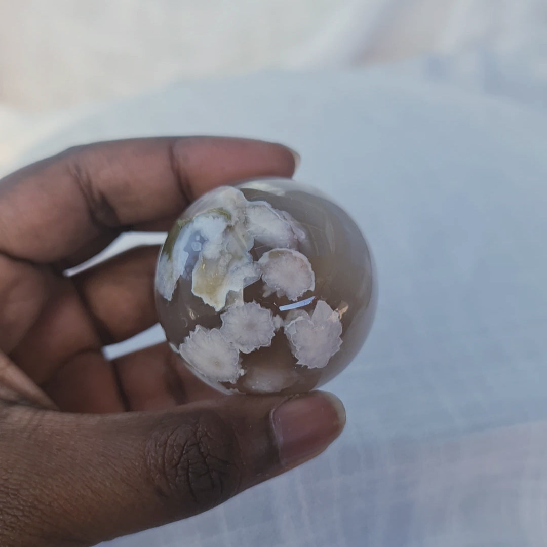 Flower Agate, with its delicate floral patterns and gentle energy, indeed has a strong association with enhancing feminine qualities and connecting to the divine. When combined with Hematite and Basalt inclusions, it gains additional properties that bolster its grounding and protective effects.