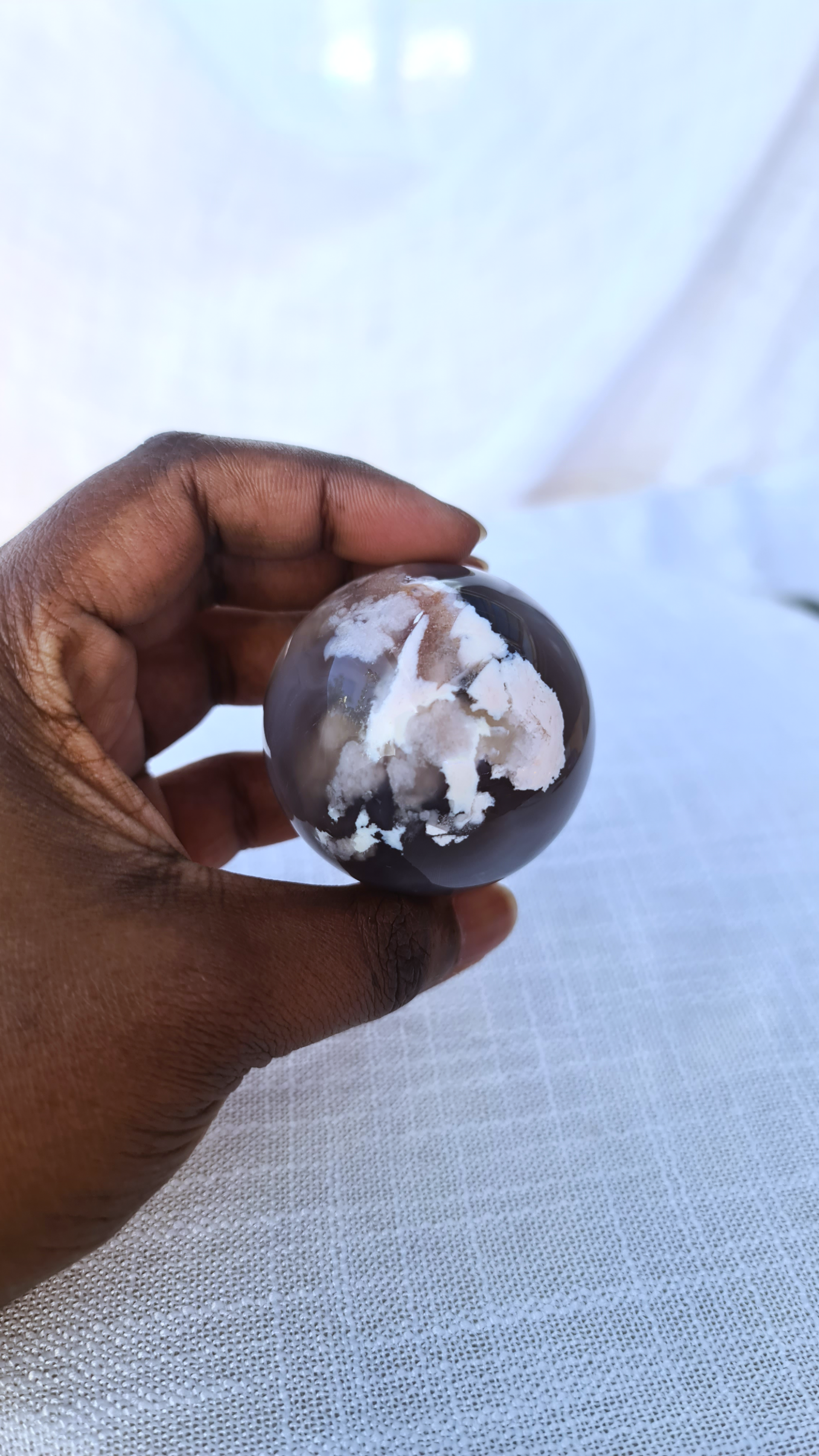 Black flower agate Sphere C