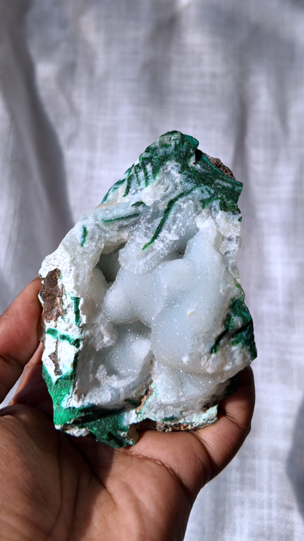 Chalcedony, malachite & quartz specimen piece