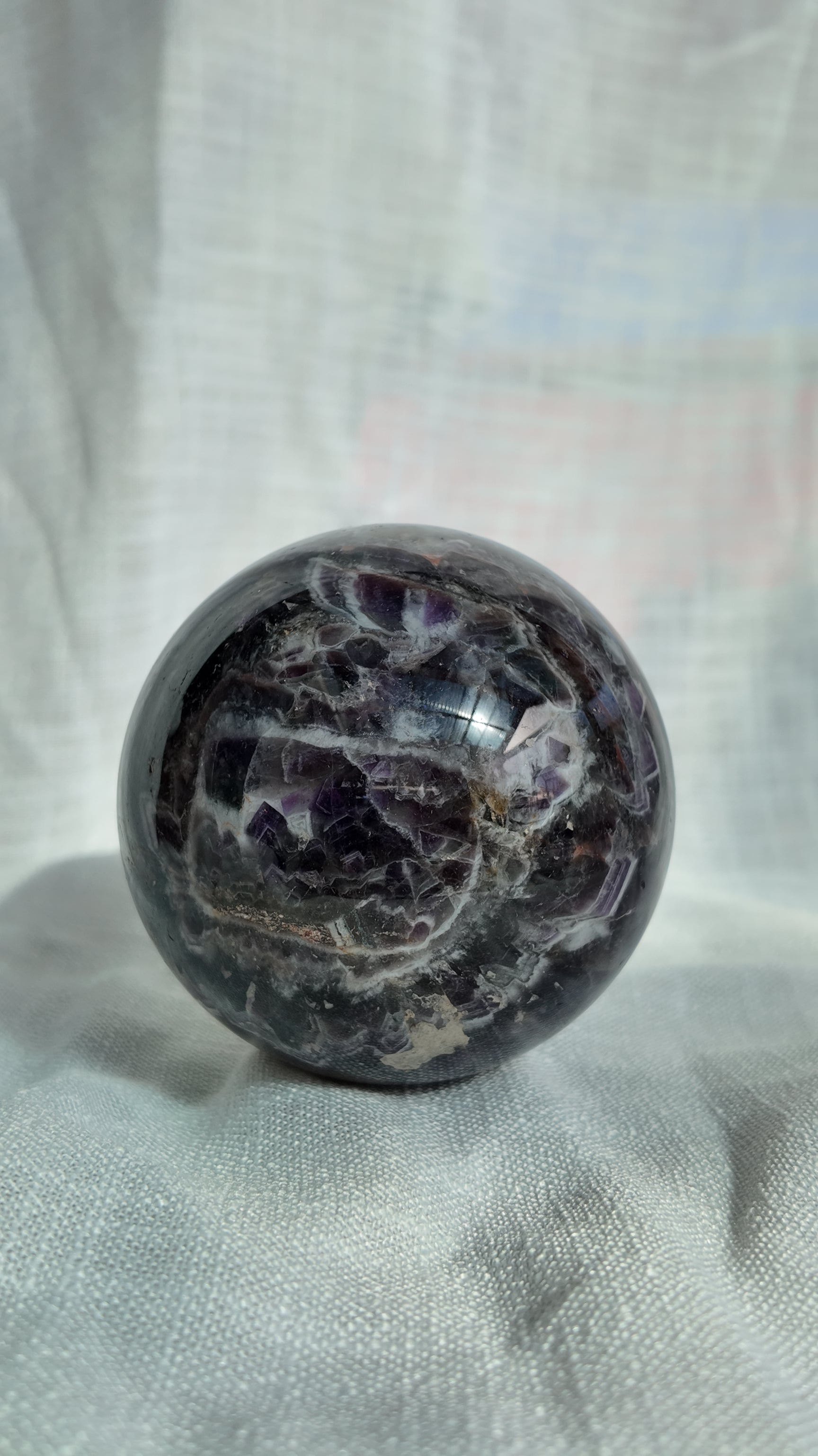 Dream Amethyst, also known as Chevron Amethyst, is a striking variety of quartz that combines the deep purples of Amethyst with the snowy whites of Clear Quartz. These bands form naturally as silica-rich solutions crystallize in layers, with iron impurities giving Amethyst its purple tones and the absence of impurities creating the white quartz. Over time, this process produces the distinct chevron or zig-zag patterns that make Dream Amethyst so unique. Each piece is a natural artwork — bold in pattern, yet soothing in its blend of color.