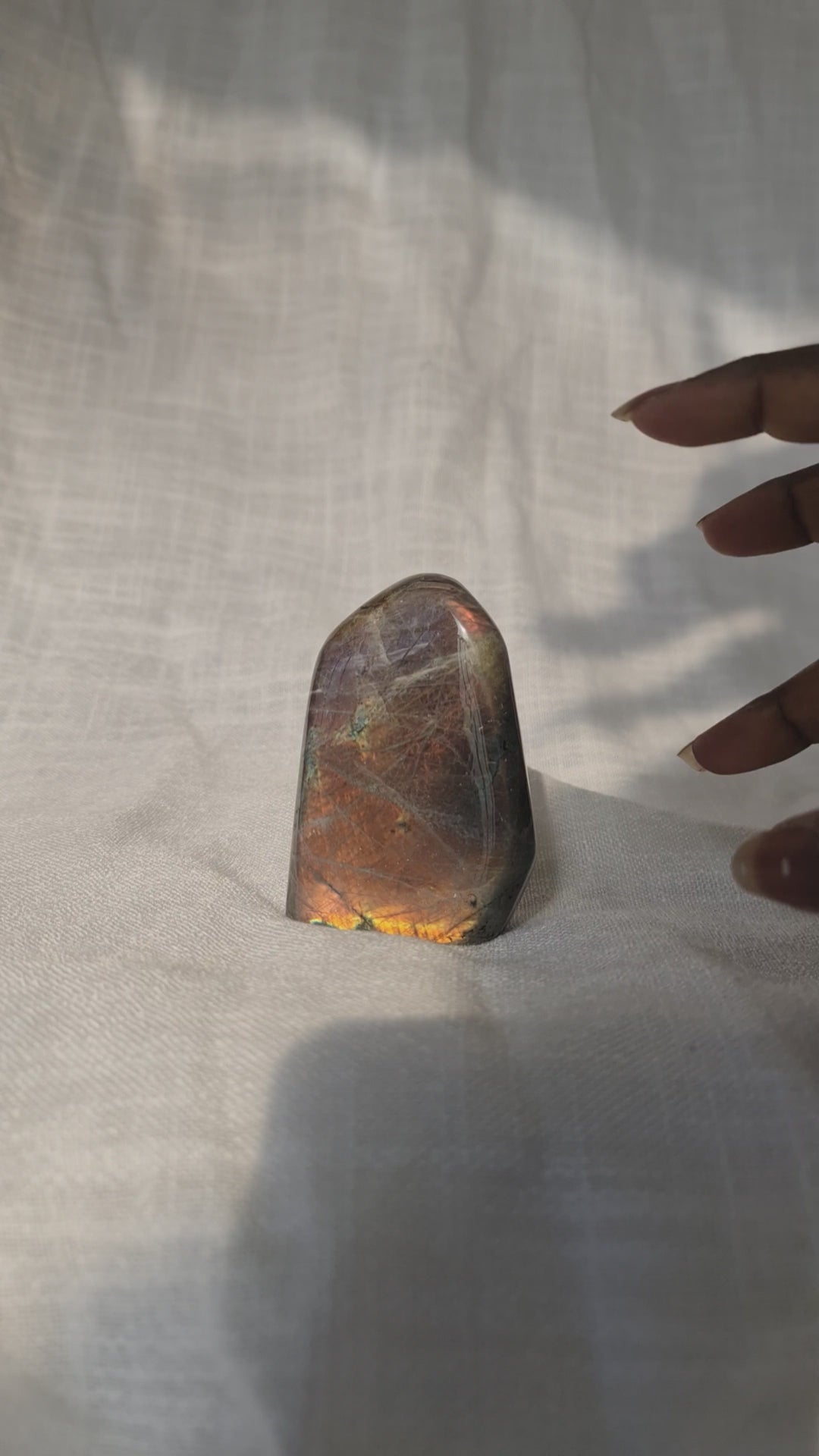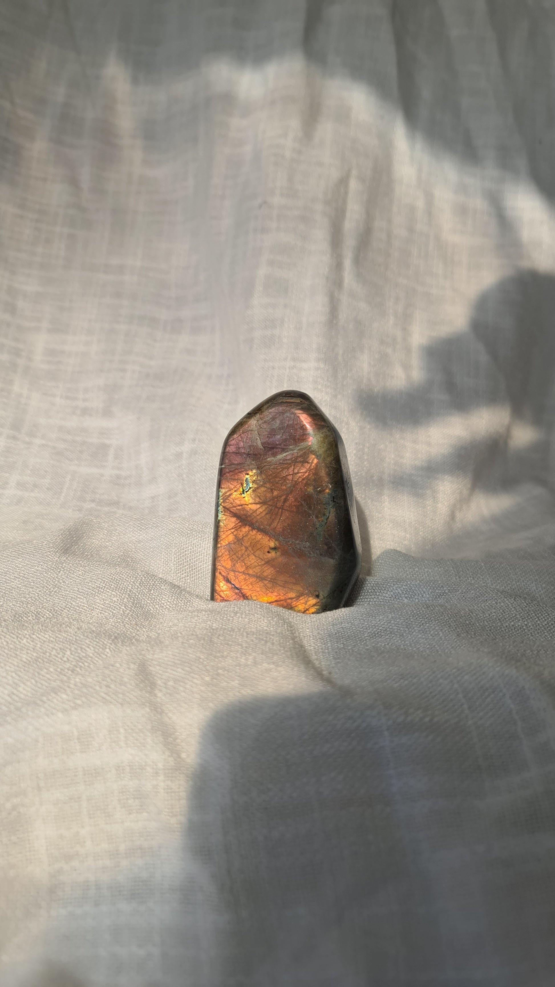 Labradorite is a crystal of transformation, intuition, and protection. Flashes of iridescent is caused by magnetite under the surface which reflect the light, causing those beautiful colors that you see.